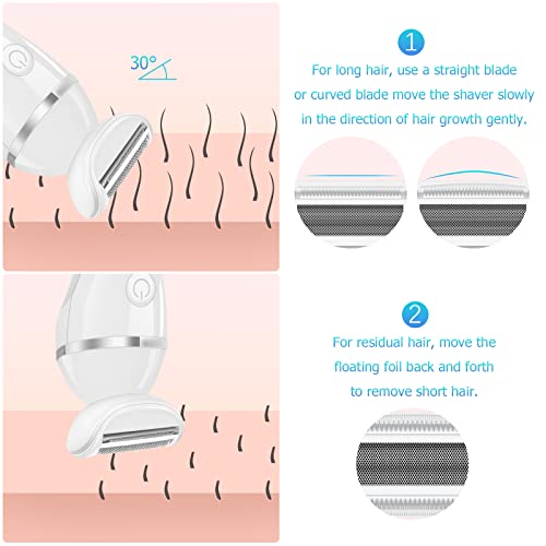 ❤[Rasierer Damen Elektrisch Intimbereich]-: Der hypoallergene Edelstahl-Schwebekopf ist schmerzfrei auf empfindlicher Haut. An empfindlichen Stellen einfach die gebogene Klinge verwenden, um die Länge der Haare zu reduzieren und die behaarte Haut weich und glatt zu machen