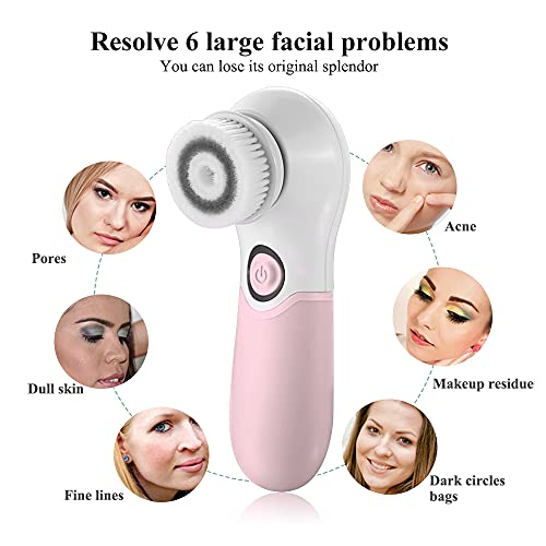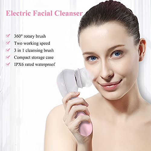 TOUCHBeauty Elektrische Gesichtsreinigungsbürste,Gesichtsbürste set mit 3 Bürstenköpfen & Aufbewahrungsbox,2-Stufige Rotation,IPX6 Wasserdicht AG-14838P(Rosa)