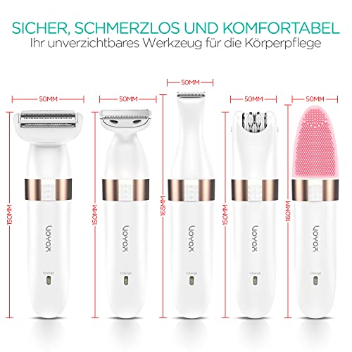 Specification: VOYOR Elektrischer Rasierer Damen Nass und Trocken Damenrasierer Wiederaufladbar Ladyshaver für Bikinizone Körper Achseln Kabelloser Wasserfest 5-IN-1 Elektrorasierer ES500