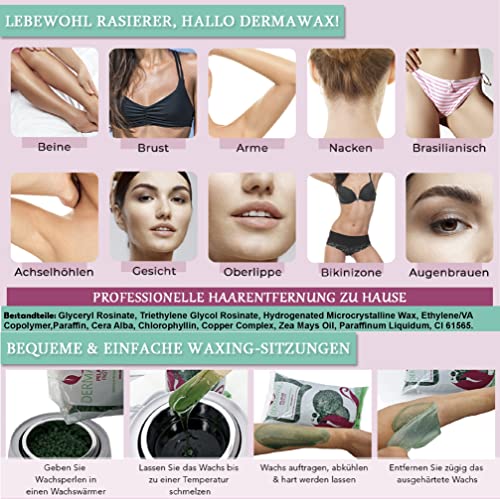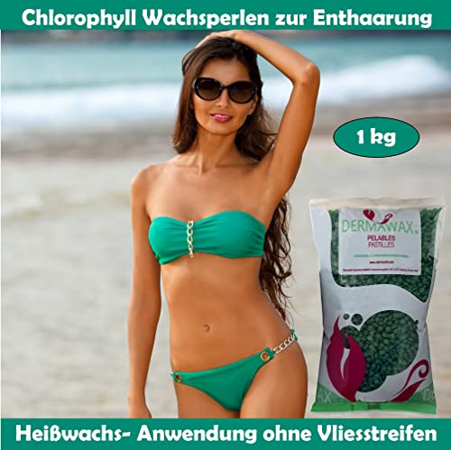Specification: 1 kg Dermawax Chlorophyll Wachs Heisswachs Waxing Perlen Wachsperlen Anwendung ohne Wachsstreifen für Enthaarung, Haarentfernung Brazilian Waxing Ganzkörper Intim, Beine, Gesicht und Arme