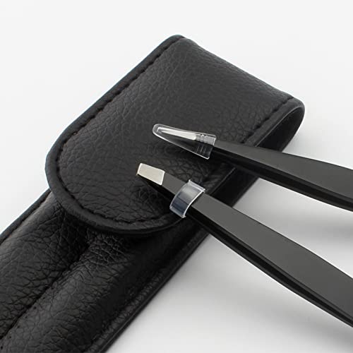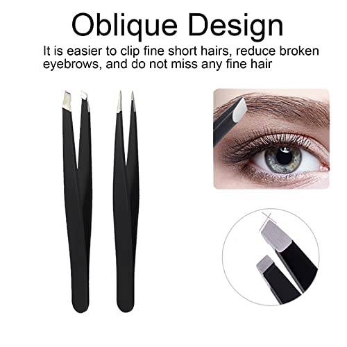 Kafeiya 2-teiliges Pinzette für Augenbrauen,Schräge Pinzette und Spitzpinzette,Augenbrauen-Pinzetten-Set,Präzisions-Pinzettenset aus Edelstahl,Schwarz