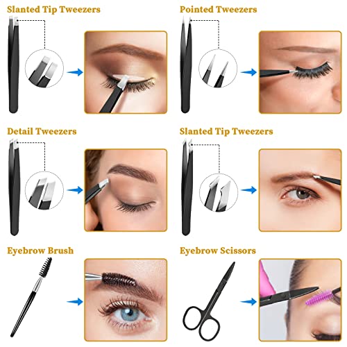 【Preiswertes Pinzettenset】 Unser professionelles Augenbrauenpinzettenset beinhaltet: 1 spitze Pinzette, 1 Detailpinzette, 1 flache Pinzette und 1 Pinzette mit schräger Spitze, 1 Augenbrauenschere und 1 Augenbrauenbürste. Pinzette lang werden während der gesamten Brauenpflege verwendet.
