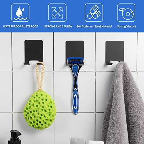AUXSOUL 6 Stück Rasierhalter Dusche Mehrzweckhaken Edelstahl Wandhaken Selbstklebend Rasierer Halterung (Edelstahl Schwarz)
