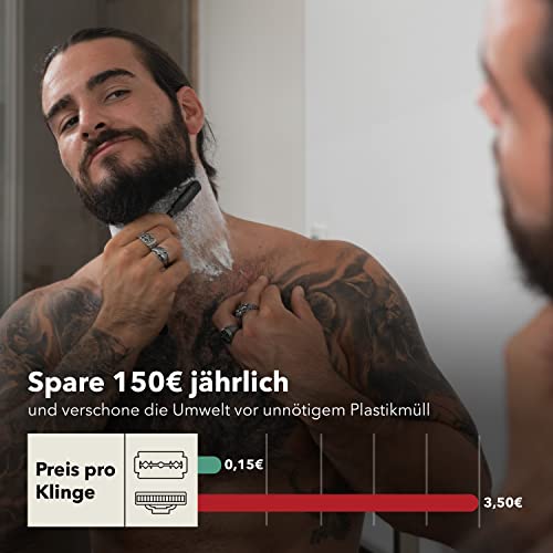 ✓ SAUBERE KONTUREN WIE BEIM BARBIER: Das Rasiermesser ist perfekt für saubere Konturen, die man mit einem Systemrasierer oder elektr. Rasierer niemals so hinbekommt. Dank nur einer Klinge wird die Haut außerdem weniger gereizt als bei 5 Klingen Systemrasierern. Durch die hochwertigen Klingen werden trotzdem alle Haare erwischt.