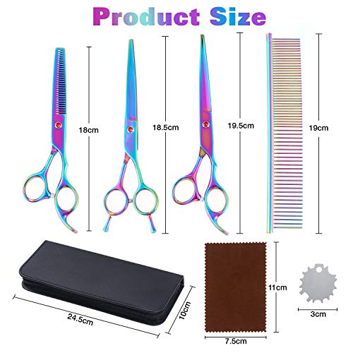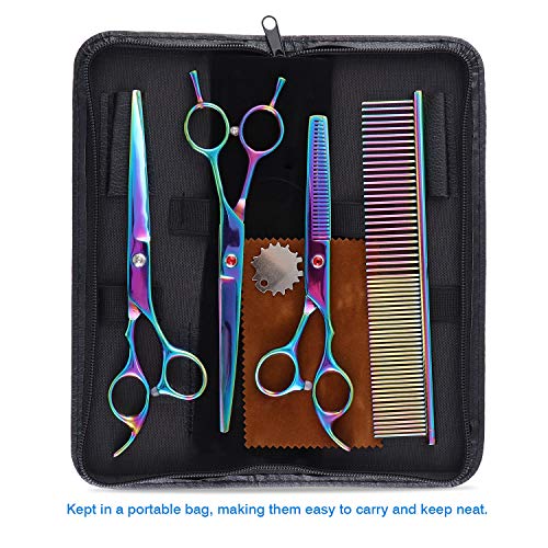 Dieses 4 teilige Grooming Kit beinhaltet 7 Zoll Cutting Schere, 7-Zoll-Verringerung Scissor, 7-Zoll-Gebogene Schere nach oben zeigen, Grooming Kamm und Schere Fall.