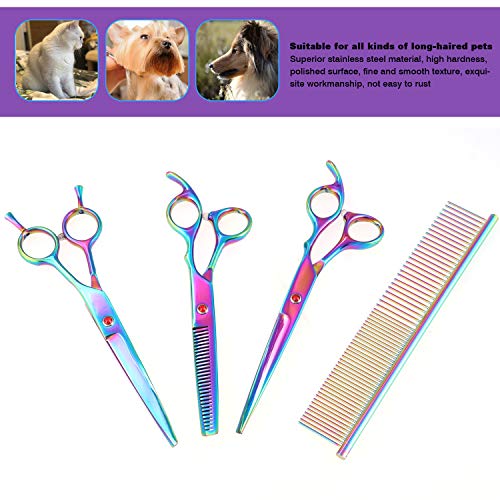 Dieses 4-teilige Pet Grooming Kit enthält hochwertige Edelstahl Straight Edge Schere, Effilierschere, Gekrümmte Scissor und Pet Grooming Kamm, werden sie Ihre grundlegenden täglichen Pflege braucht decken.