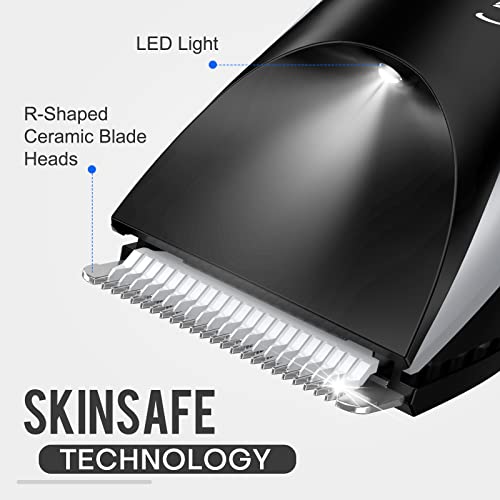 ✂【Hochleistungs-Keramikklingen】Advanced Blade: Körperhaartrimmer für Männer mit hautfreundlichen Keramikklingen, trimmen ohne an den Haaren zu ziehen. R-förmige Designklingen reduzieren das Risiko von Schnitten, Kratzern, reduzieren das Reißen der Haare, lindern Schmerzen und stimulieren die Haut. Sunsent Body Groomer bietet 2 Geschwindigkeiten, um unterschiedliche Betriebsanforderungen zu erfüllen. Eine glatte, bequeme und sichere Rasur, lassen Sie Ihren Körper sauber, ordentlich und attraktiv.