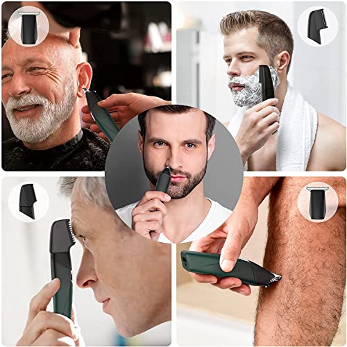 Multifunktionales Körperpflegeset: 4 verschiedene Köpfe sind perfekt für alle Ihre Trimmbedürfnisse, Körpertrimmer, Elektrorasierer, Barthaarschneider, Nasen- und Ohrhaarschneider machen die Körperpflege einfach. Einzigartiger V-förmiger Kopf, robuster Motor und sanfte Berührung, um sicher und effektiv überall am Körper zu trimmen und zu pflegen